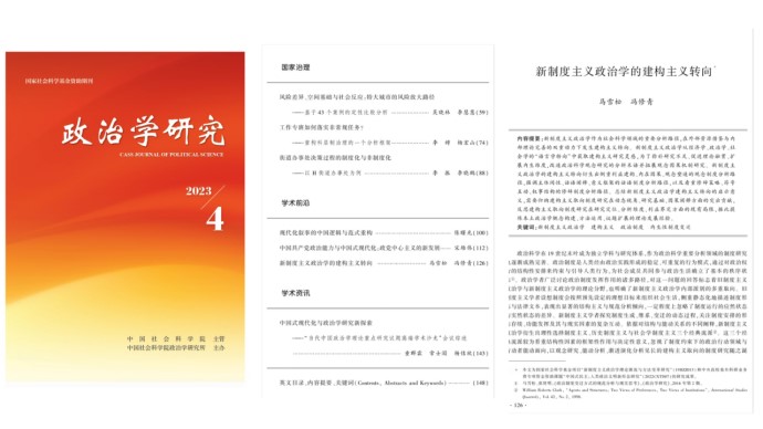 近日,公司马雪松教授团队在《政治学研究》2023年第4期发表题为《新制度主义政治学的建构主义转向》的文章。文章揭示了新制度主义政治学建构主义转向的社会科学背景、内在原因与推动力量,考察建构主义取向的新制度主义政治学的主要研究路径,阐述了新制度主义政治学建构主义转向的贡献、局限及其对本土政治学的启示。文章以制度研究的能动性维度这一创新视角为切入点,系统阐释了新制度主义政治学建构主义转向的学理脉络与内在逻辑。