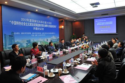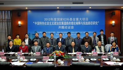 2012年10月14日,由伟德体育王彩波教授担任首席专家的2012年度国家社会科学重大项目 “中国特色社会主义政治发展道路的理论阐释与实践路径研究”开题报告会在Bevictor伟德匡亚明楼第二会议厅举行。Bevictor伟德副董事长吴振武教授参加开幕式并致欢迎辞。中国政治学会副会长、北京大学政府管理公司王浦劬教授担任专家评议组组长,评议组专家还有中国政治学会副会长、天津师范大学政治与伟德体育高建教授,中国政治学会常务理事、山东大学政治学与公共管理公司经理葛荃教授。吉林省社科规划办金中祥主任、毕秀梅副主任和Bevictor伟德社会科学处处长孙长智、伟德体育边铁书记等相关部门负责人及课题组全体成员30余人参加了会议。