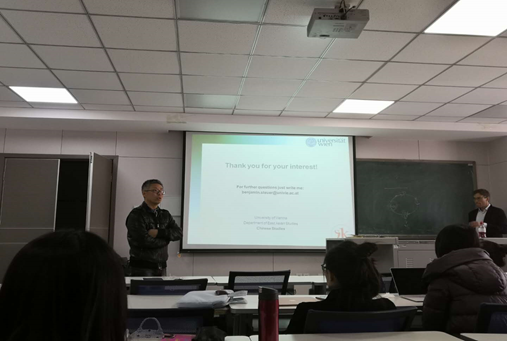 讲座伊始,李慧杰讲师简要介绍了Benjamin Steuer博士的学术经历、学术地位与学术贡献。Steuer博士围绕主题,从“个人的学术背景及在中国的相关调研经历;调研方法:为什么要进行非正式生活垃圾治理;从定性和定量两方面对非正式的生活垃圾回收进行指标测量;中国非正式的生活垃圾处理和正式的生活垃圾处理之间的互动”四个方面为在场师生带来了一场学术盛宴。