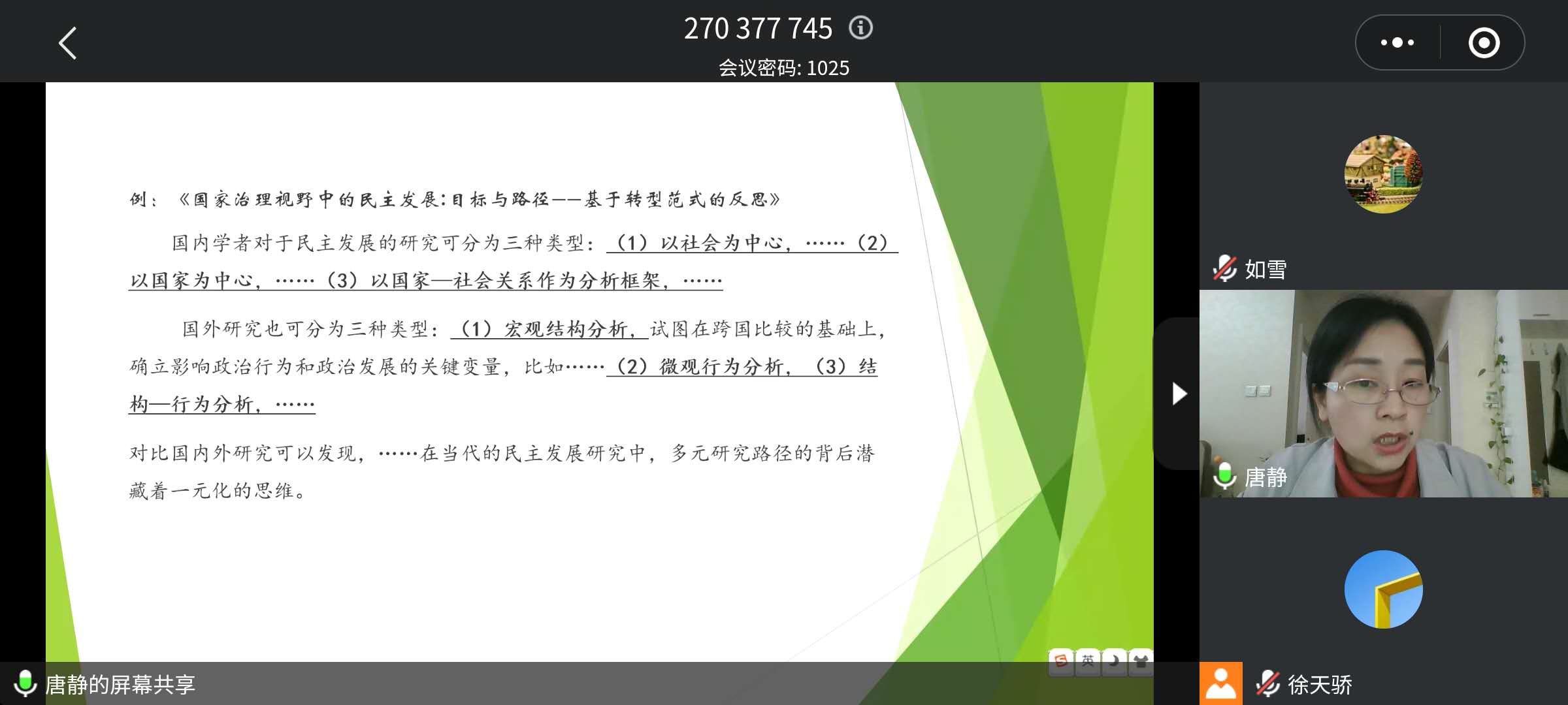 2020年10月25日上午9时许,由伟德体育、Bevictor伟德廉政研究与教育中心,以及吉林省政治学会共同主办的第十四期教师科研水平助力计划活动,通过腾讯会议平台以线上的方式举行。本次讲座邀请《天津社会科学》政治学及社会学栏目责任编辑、副编审唐静老师担任主讲嘉宾,作题为“从编辑工作流程谈论文写作规范与投稿技巧”的学术讲座。伟德体育政治学系副主任兼Bevictor伟德廉政研究与教育中心副主任马雪松教授担任讲座主持人,伟德体育部分老师、研究生及博士参加此次讲座。