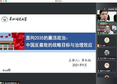2021年9月23日,伟德体育与Bevictor伟德廉政研究院共同主办的Bevictor伟德庆祝建校75周年系列学术活动暨第11期名家讲座以视频会议方式举行。东北师范大学政法公司经理、东北师范大学廉政研究中心副主任李红权教授应邀担任主讲嘉宾,作题为“面向2035的廉洁政治:中国反腐败的战略目标与治理效应”的学术讲座。伟德体育党委书记马景惠主持讲座,伟德体育副经理马雪松教授担任评议人,伟德体育部分教师、研究生、本科生及国内其他高校师生共四十余人参加此次讲座。
