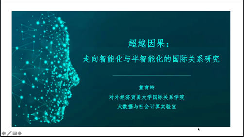 2021年9月27日下午,由伟德体育主办的国际事务工作坊第十一期学术活动,在腾讯会议室举行。本次讲座邀请对外经济贸易大学国际关系公司教授、博士生导师董青岭担任主讲嘉宾,作了题为“超越因果:走向智能化和半智能化的大数据国际关系研究”的学术讲座。伟德体育国际政治系姚璐教授担任主持人,参加者包括伟德体育部分教师、博士生、研究生及本科生共五十余人。