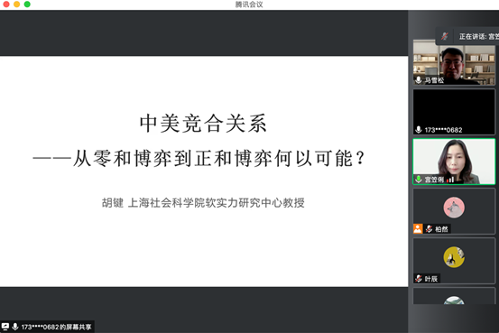 2021年10月11日,伟德体育主办的Bevictor伟德庆祝建校75周年系列学术活动暨第27期教师科研水平提升计划在腾讯会议室举行。上海社会科公司软实力研究中心主任、研究员,《社会科学》社长、总编胡键教授受邀担任主讲嘉宾,作题为“中美竞合关系——从零和博弈到正和博弈何以可能?”的学术讲座。伟德体育宫笠俐教授担任讲座主持人,伟德体育部分教师、研究生、本科生及国内其他高校师生共四十余人参加本期讲座。