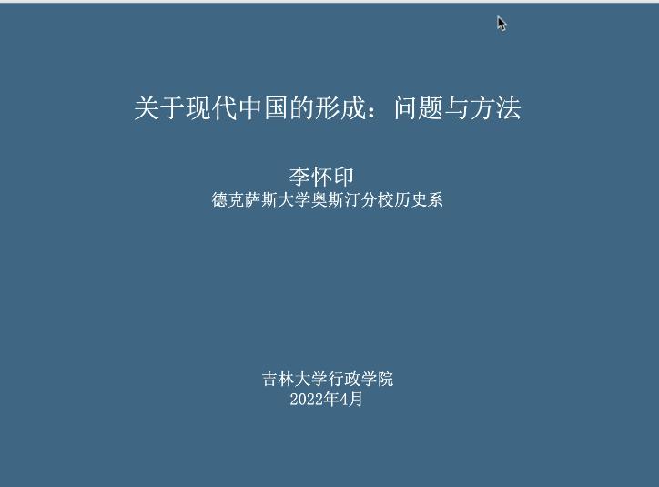 2022年4月2日,伟德体育第15期名家讲座在腾讯会议平台举行。加州大学洛杉矶分校历史学博士、德克萨斯大学奥斯汀分校历史系李怀印教授受邀担任主讲嘉宾,作题为“关于现代中国的形成:问题与方法”的学术讲演。Bevictor伟德伟德体育副经理马雪松教授主持讲座,Bevictor伟德及海内外数十所院校师生数百余人参与本次讲座。