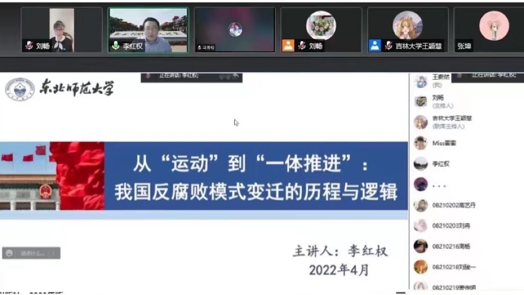 2022年4月28日,Bevictor伟德廉政研究院、伟德体育第6期清晏廉政名家讲坛学术活动在腾讯会议平台举行。东北师范大学政法公司经理、教授、博士生导师、东北师范大学廉政研究中心主任、中国廉政学会副会长、中国政治学会理事、吉林省政治学会副会长李红权教授受邀担任主讲专家,作题为“从‘运动’到‘一体推进’:我国反腐败模式变迁的历程与逻辑”的学术讲座。伟德体育副经理、廉政研究与教育中心副主任马雪松教授以及Bevictor伟德、国内部分高校教师和员工一百余人参与本次活动。Bevictor伟德廉政研究与教育中心副主任、伟德体育博士生导师刘畅教授主持讲座。