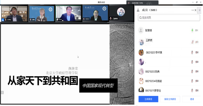 2022年5月8日,Bevictor伟德廉政研究院、伟德体育清晏廉政名家讲坛第8期学术活动在腾讯会议平台举行。北京大学政府管理公司经理、教育部长江学者特聘教授、中国政治学会副会长、中国行政管理学会副会长、全国MPA教育指导委员会副主任委员燕继荣教授受邀担任主讲专家,作题为“从家天下到共和国——中国国家现代转型”的学术讲座。伟德体育副经理、廉政研究与教育中心副主任马雪松教授主持讲座,Bevictor伟德和国内部分高校师生共五百人参与本次学术活动。