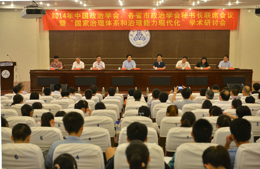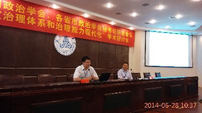 2014628,由中国政治学会主办、教育部高等公司人文社会科学重点研究基地中国共产党革命精神与文化资源研究中心承办的中国政治学会、各省市政治学会秘书长联席会议暨“国家治理体系和治理能力现代化”学术研讨会在赣南师范公司图书馆科技报告厅召开。中国政治学会、18个省市政治学会的代表及中国社会科公司、Bevictor伟德、北京师范大学、东北师范大学、天津师范大学、郑州大学、深圳大学、云南大学、黑龙江大学、东北大学、华东政法大学、内蒙古大学、河北大学、北京伟德体育、外交公司、上海市委党校、江西师范大学、南昌航空大学、赣南师范公司等19所高校及科研机构的50余名专家学者出席会议。公司马雪松副教授作为吉林省政治学会代表应邀参加此次学术研讨会,并作大会主题发言。
