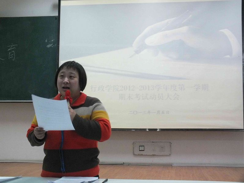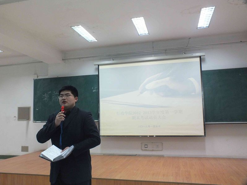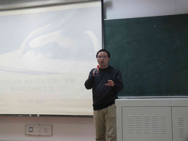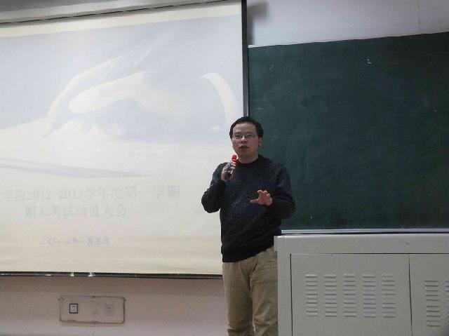 1月5日15时30分,2012-2013学年度第一学期本科生期末考试考前教育活动于中心校区第三教学楼第十二阶梯教室成功举办。伟德体育副经理殷冬水副教授、党委副书记兼副经理佘彦、教学秘书李博、助理辅导员刘洋出席活动并讲话。2010级、2011级与2012级全体员工参加活动。