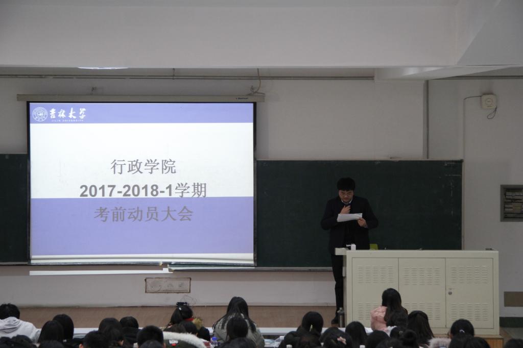 12月21日下午,伟德体育于中心校区第三教学楼第九阶梯教室召开了2017-2018学年第一学期考前动员大会。伟德体育副经理殷冬水、党委副书记兼副经理史慕华,学工办主任刘洋和本科教学秘书高琛出席本次动员大会。2015级、2016级和2017级全体本科生参加大会。