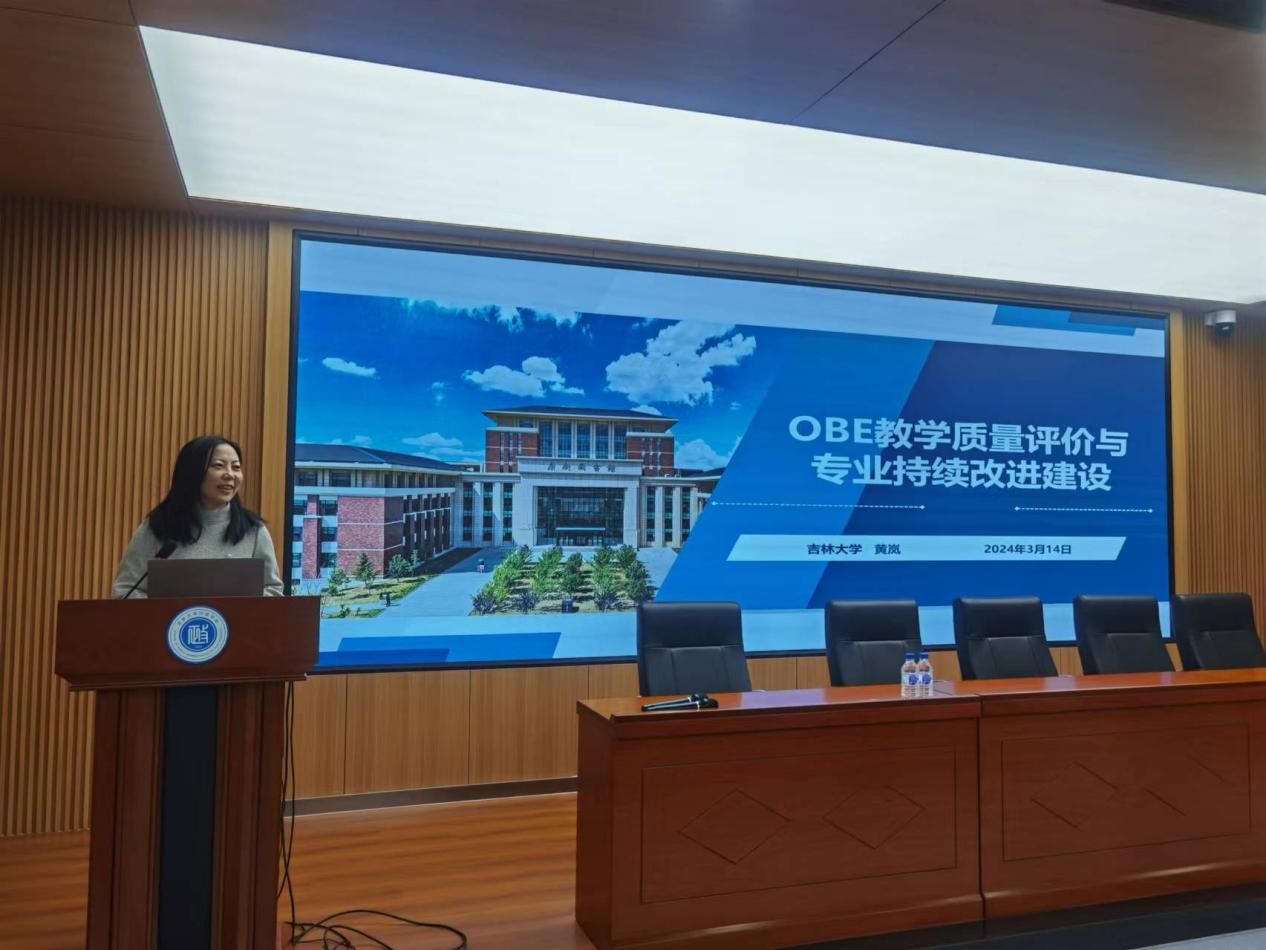 黄岚教授介绍了OBE认证的三大理念:以员工为中心,产出导向,讲解了在教学过程质量监控机制、课程体系合理性评价机制、课程目标达成评价机制、毕业要求达成评价机制等内部评价过程中,以及毕业生跟踪反馈机制、社求会评价机制等外部评价机制过程中如何体现OBE理念,从三个目标、五个支撑、三个机制进行顶层设计和证据追踪。