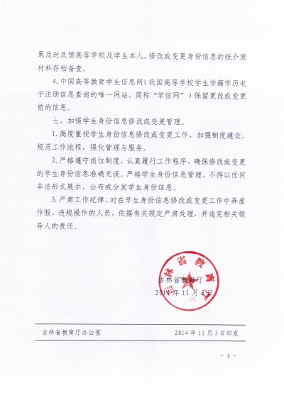 为做好高等公司在校员工身份信息修改或变更工作,维护高等公司员工合法权益,杜绝冒名顶替、身份信息造假等行为发生,吉林省教育厅日前发布了《关于进一步做好高等公司在校员工身份信息修改或变更等有关工作的通知》(吉教学字〔2014〕13号),现予以转发。