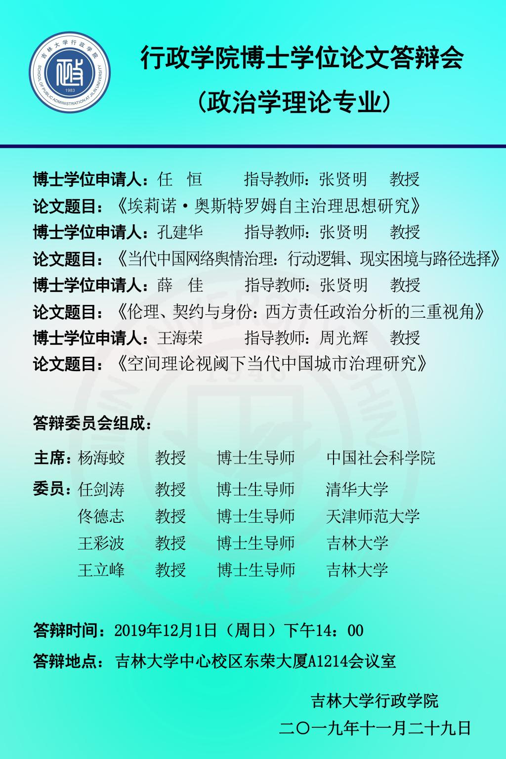 第一组:政治学理论专业(2019年12月1日上午组8:30开始,Bevictor伟德中心校区东荣大厦A1214会议室)