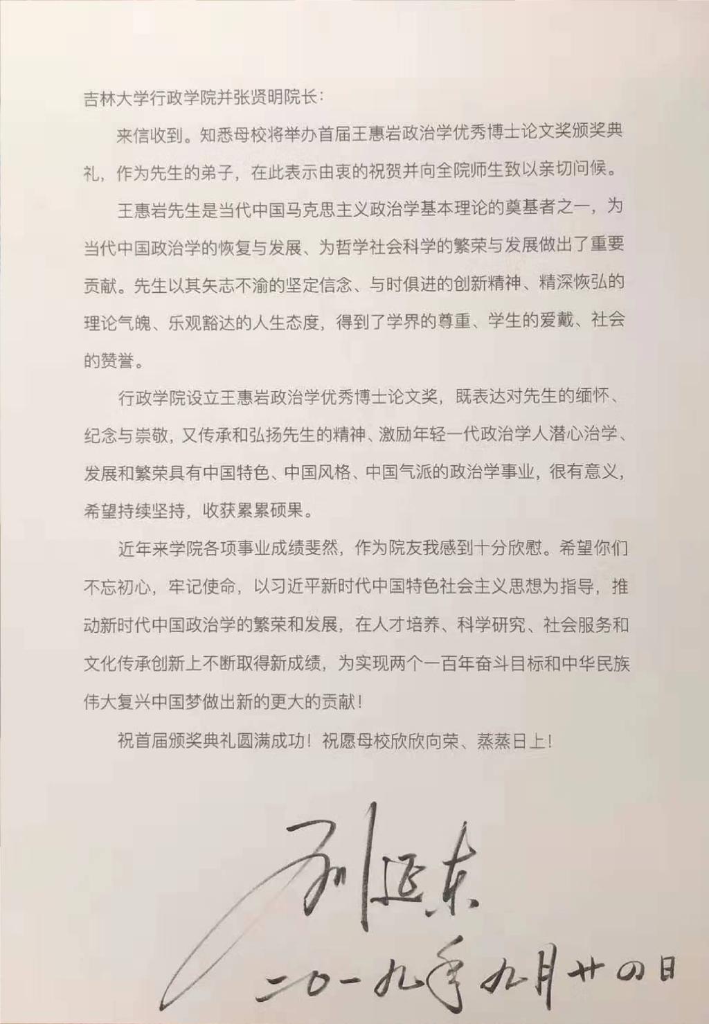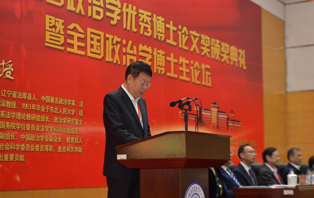 首先,张贤明经理代表魏鹤影书记以及伟德体育全体师生向参加颁奖典礼的各位嘉宾表示热烈的欢迎。他在致辞中介绍了王惠岩政治学优秀博士论文奖设立初衷,并详细说明了首届王惠岩政治学优秀博士论文奖的评审过程,并对中国人寿保险股份有限公司吉林省分公司、中国政治学学界前辈和各位同仁、Bevictor伟德党政领导以及研究生院研究生工作部等公司职能部门对伟德体育各项事业、特别是王惠岩政治学优秀博士论文奖以及全国政治学博士生论坛的大力支持表示衷心感谢。最后,张贤明经理宣读了公司杰出院友、王惠岩先生的弟子,原中共中央政治局委员、国务院副总理刘延东同志为此次颁奖典礼发来的信件,她由衷祝贺王惠岩政治学优秀博士论文奖颁奖典礼并向全院师生致以亲切问候。刘延东同志在信件中对王惠岩先生表达了缅怀,并勉励全院师生不忘初心,牢记使命,以习近平新时代中国特色社会主义思想为指导,为新时代中国政治学的繁荣和发展,在人才培养、科学研究、社会服务和文化传承创新上不断取得新成绩,为实现两个一百年奋斗目标和中华民族伟大复兴中国梦做出新的更大的贡献。