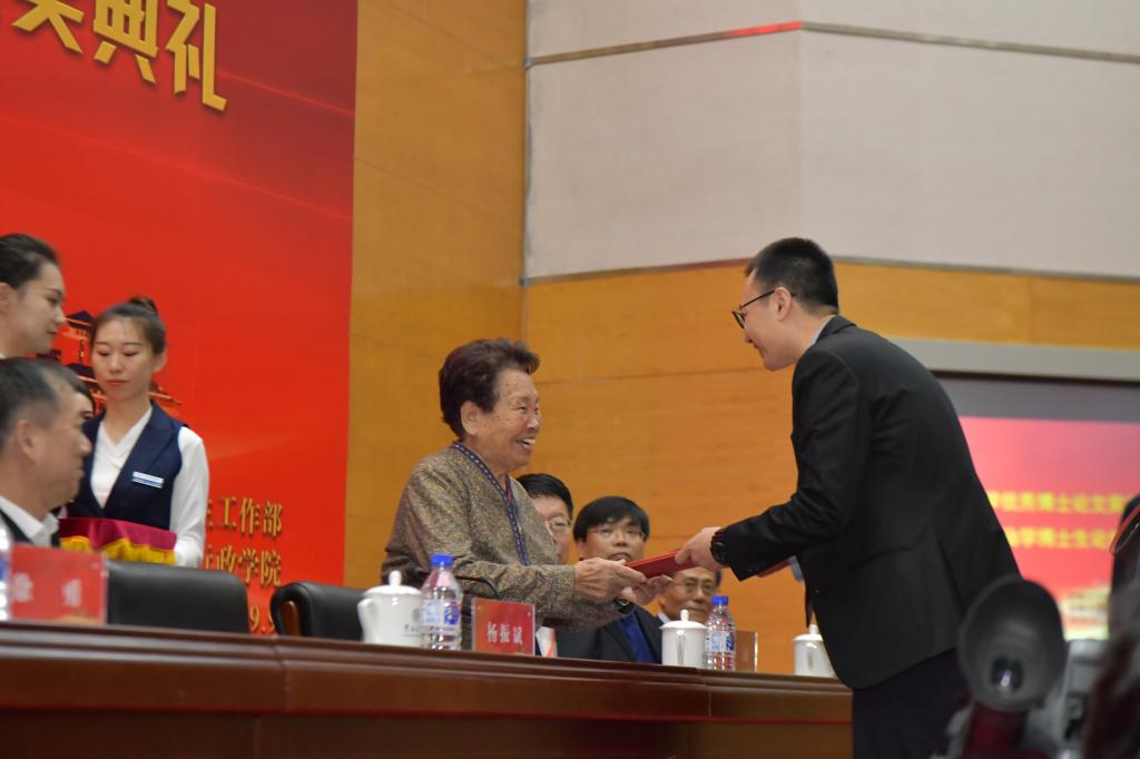 在颁奖环节,王惠岩先生夫人脱弱女士为王惠岩政治学优秀博士论文奖获奖代表安超、游宇、罗宇维等同学颁发荣誉证书,Bevictor伟德党委书记杨振斌向论文指导教师代表潘小娟教授、张光教授、周光辉教授、王彩波教授等颁发荣誉证书。