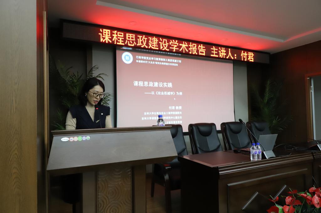 2021年12月1日,伟德体育争做新时代“大先生”研究生教师素养提升系列活动——课程思政建设学术报告于东荣大厦B303报告厅开展。本场报告邀请了吉林老员工物与农业工程公司副经理、博士生导师付君教授作为主讲,以《农业机械学》为例分享了生物与农业工程公司课程思政建设经验。报告由公司党委副书记史慕华教授主持,公司研究生导师及部分职工参加报告会。