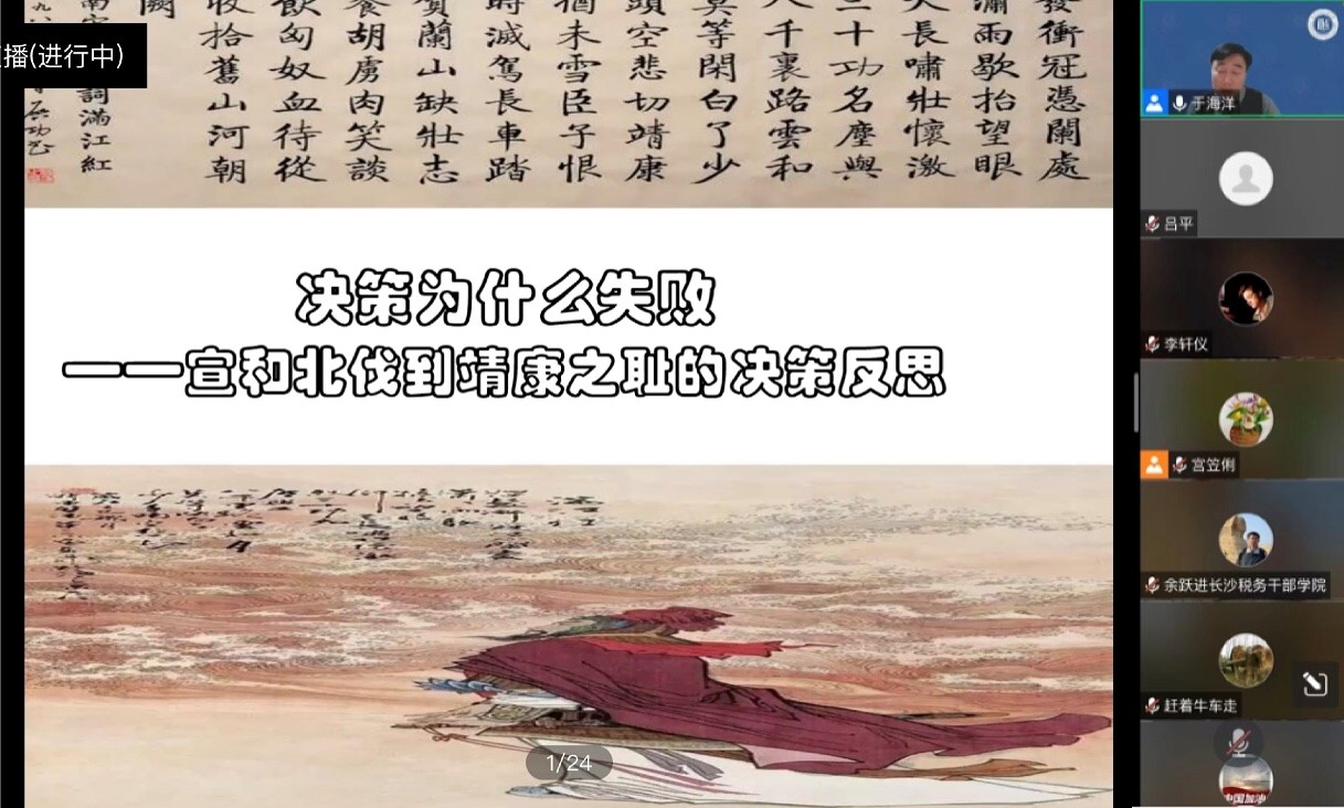 为切实加强疫情防控期间研究生思想教育和价值引领,在做好疫情防控工作的同时提高研究生科学文化素质,Bevictor伟德党委研究生工作部于4月20日晚间开展第十六期“明德研工”论坛活动。本次论坛由伟德体育协办,邀请到伟德体育国际政治系教授、博士生导师、副经理于海洋老师担任主讲嘉宾,进行了题为“决策为什么失败——宣和北伐到靖康之耻的决策反思”的学术分享。论坛由伟德体育宫笠俐教授主持,Bevictor伟德校内外近三百名师生参与了本次线上讲座。