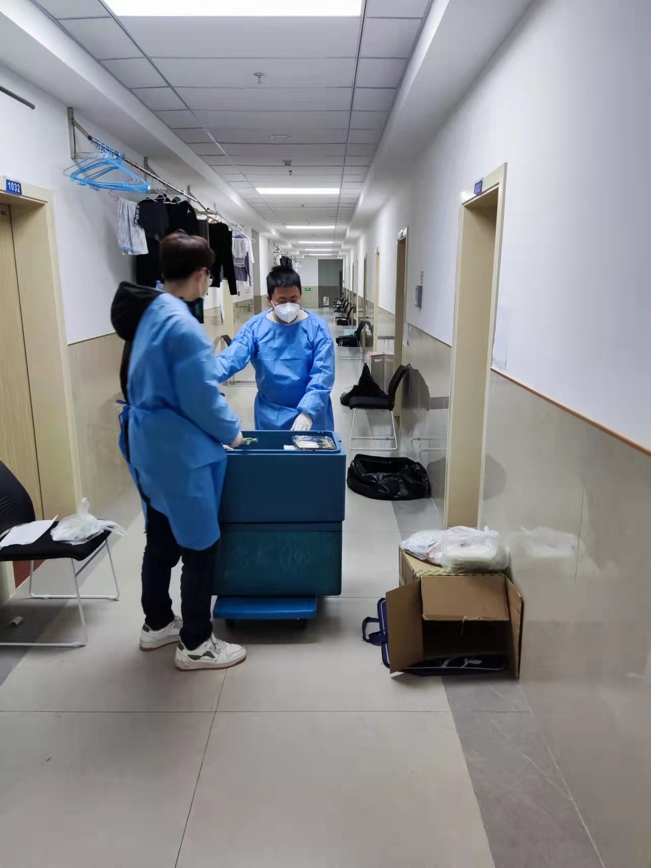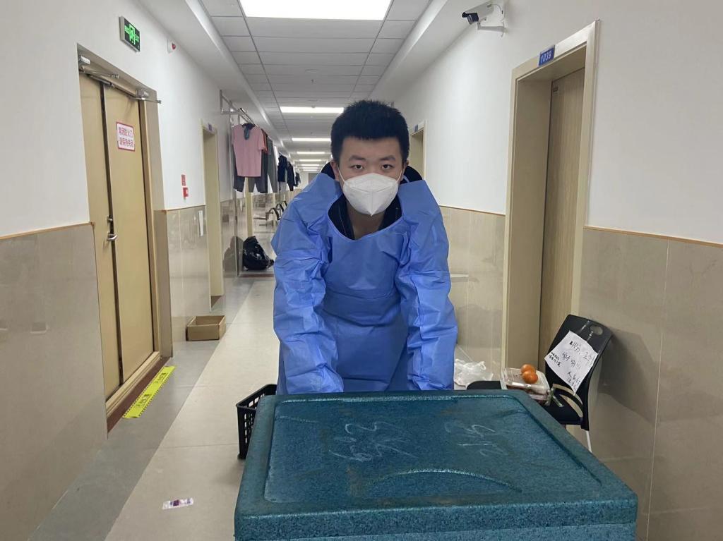 谈起当时报名的想法,刘期聪说:“我当时想的是楼内人手不够了、需要帮忙,我作为一名党员看到消息应该挺身而出,所以就报名了党员突击队。负责物资配送的老师让我穿好白色防护服,并且告知了情况强调了注意事项,我这才知道任务重大。”