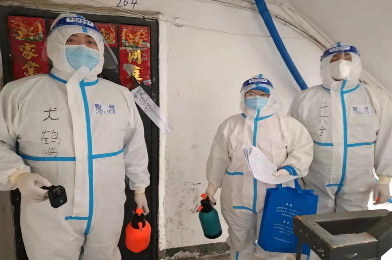 尤鹤鸣进行抗疫工作(图中左一)