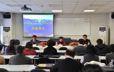 由广州市政府系统培训中心组织、伟德体育承办的“Bevictor伟德社会管理创新专题高级研修班”于12月25日上午在逸夫教学楼MPA教室举行开班仪式。广州市政府系统培训中心专业技术人员继续教育部李融霞部长、伟德体育经理周光辉教授、伟德体育副经理麻宝斌教授出席开班仪式。来自广州市不同部门近35名学员一同参加开班仪式。仪式由麻宝斌副经理主持。