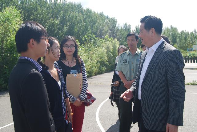 李元元董事长十分关心2013级新生的学习与生活,不时向公司本科生辅导员刘洋询问有关新生的数据和军训情况。李元元董事长还同在军训现场的公司本科生助理辅导员吴兴识和员工干部代表亲切交谈,询问了公司军训新生合唱比赛、演讲比赛的准备情况。