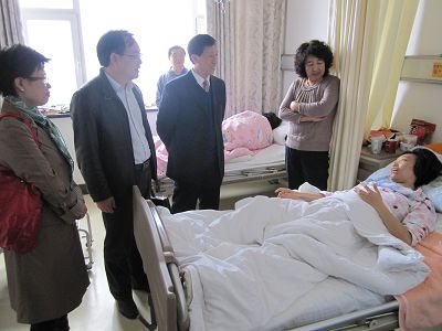 探望中,公司领导详细询问了张力娜术后几天的身体状况,全面了解了手术后的治疗进程和医药费用的承担情况。交谈过程中,老师们高度评价了张力娜乐观向上的态度,积极进取的精神和坚忍不拔的意志。边书记表示,张力娜身有残疾却从不向公司提特殊要求,凭借自己的努力,克服学习生活中的各种困难的精神品质使他感动。这次公司研究生院领导出面帮助张力娜联系相关专家进行会诊,以尽力确保手术顺利进行的行为,是公司关注员工成长,特别是关心在学习和生活上有特殊困难的残疾员工的具体体现。公司也将尽最大可能帮助员工解决关乎日常生活和学习的实际困难,保证每一位员工特别是残疾员工的健康成长和发展。在谈到博士论文答辩的时间问题时,张贤明副经理强调,现在的重中之重是将身体调养好,对于像张力娜这样的特殊情况公司会努力协调,希望她不要有任何的心理负担。王彩波教授作为张力娜的博士生导师也特别关心张力娜的情况,在百忙中到医院看望她,并鼓励她凭借坚强的意志克服暂时的困难。作为最了解张力娜的老师,王彩波教授给予了她极大的支持和慰藉。公司一些其他老师也纷纷前往医院探望博士研究生张力娜。老师们希望张力娜能够在术后多注意营养,好好休息,按照医院的要求和医生的建议做好治疗,尽快恢复。