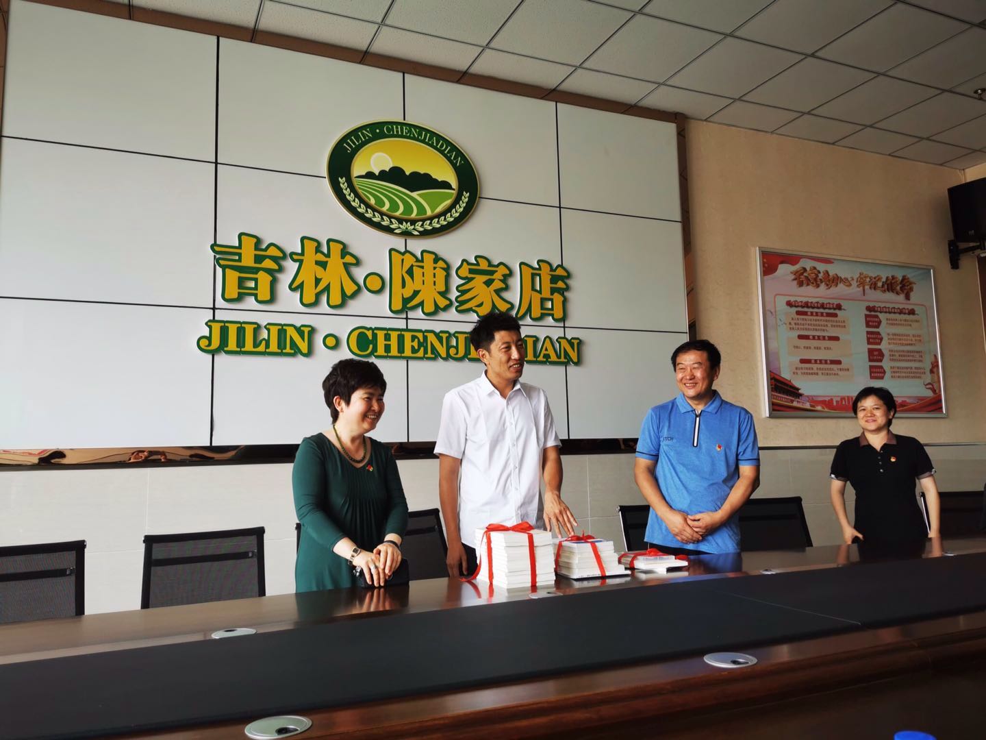 最后,公司魏鹤影书记代表参加活动的两个支部向村党委对此次活动的大力支持表示了感谢,并赠送了支部精心准备的包括《习近平新时代中国特色社会主义思想学习纲要》《习近平关于“三农”工作论述摘编》等习近平总书记重要论述文献,另外还赠送了黄大年事迹纪录片和《时代楷模黄大年》等书籍。支部党员们还在电子政务系党支部书记李国梁的带领下,在党旗前庄严重温入党誓词,表达为党的事业不懈奋斗的决心。