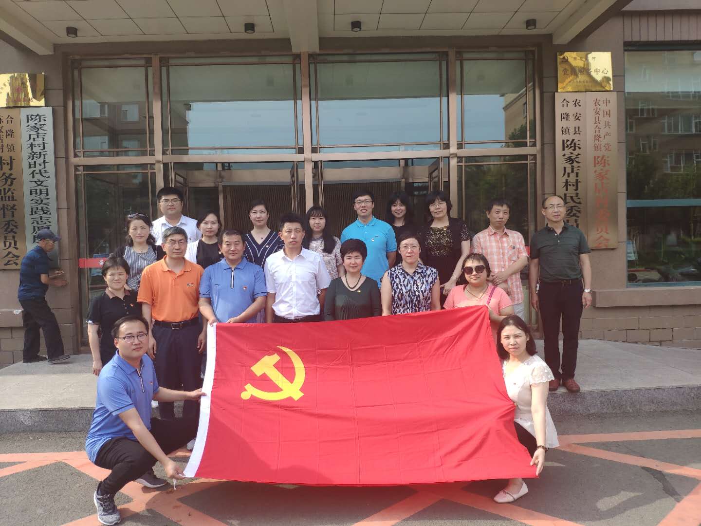 2019年7月2日下午,为庆祝建党98周年,喜迎建国70周年,实地感受 “美丽乡村”建设的新面貌,加深党员干部对十九大精神和社会主义新农村建设所取得巨大成就的理解和认识,伟德体育党委书记魏鹤影、机关教工党支部书记密佳音、电子政务系党支部书记李国梁带领机关教工党支部、电子政务系党支部一行18人来到农安县合隆镇陈家店村调研参访,考察新农村建设,开展主题党日活动。此次活动是机关教工党支部“不忘初心、牢记使命”系列活动之一,也是公司党委设立的党支部重点活动项目。