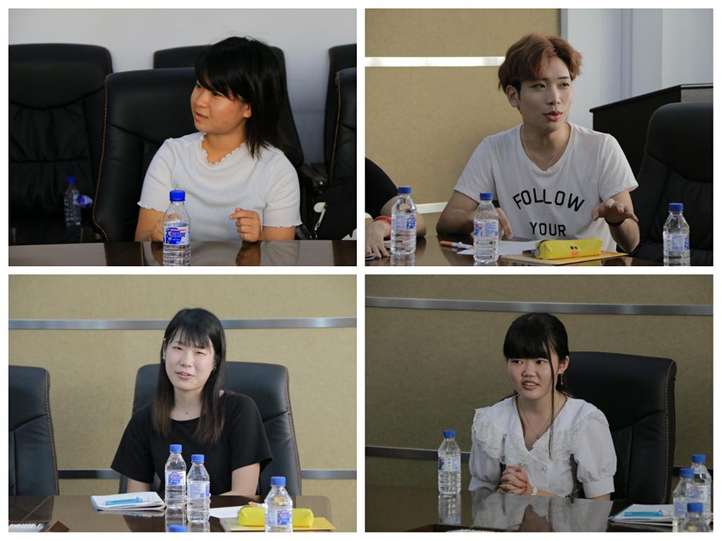 随后,两校员工进行自我介绍。冈山大学井上光等员工代表就海外留学经历、中日文化异同等话题向我方学子进行提问。公司在读博士研究生赵德昊、硕士研究生孙超群、硕士研究生崔雪彤依次就海外交换学习生活中的心得体会、中日间政治制度差异与特色、中日文化的相互渗透与融合等话题进行解答。座谈会持续一个半小时,双方学子踊跃发言,现场气氛热烈友好。