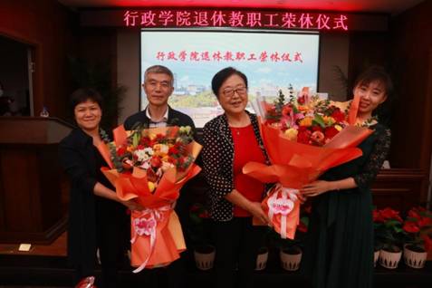 随后,张贤明经理为王彩波教授、常有余同志颁发荣休证书、荣休纪念奖杯,年轻老师为两位老师献上鲜花。