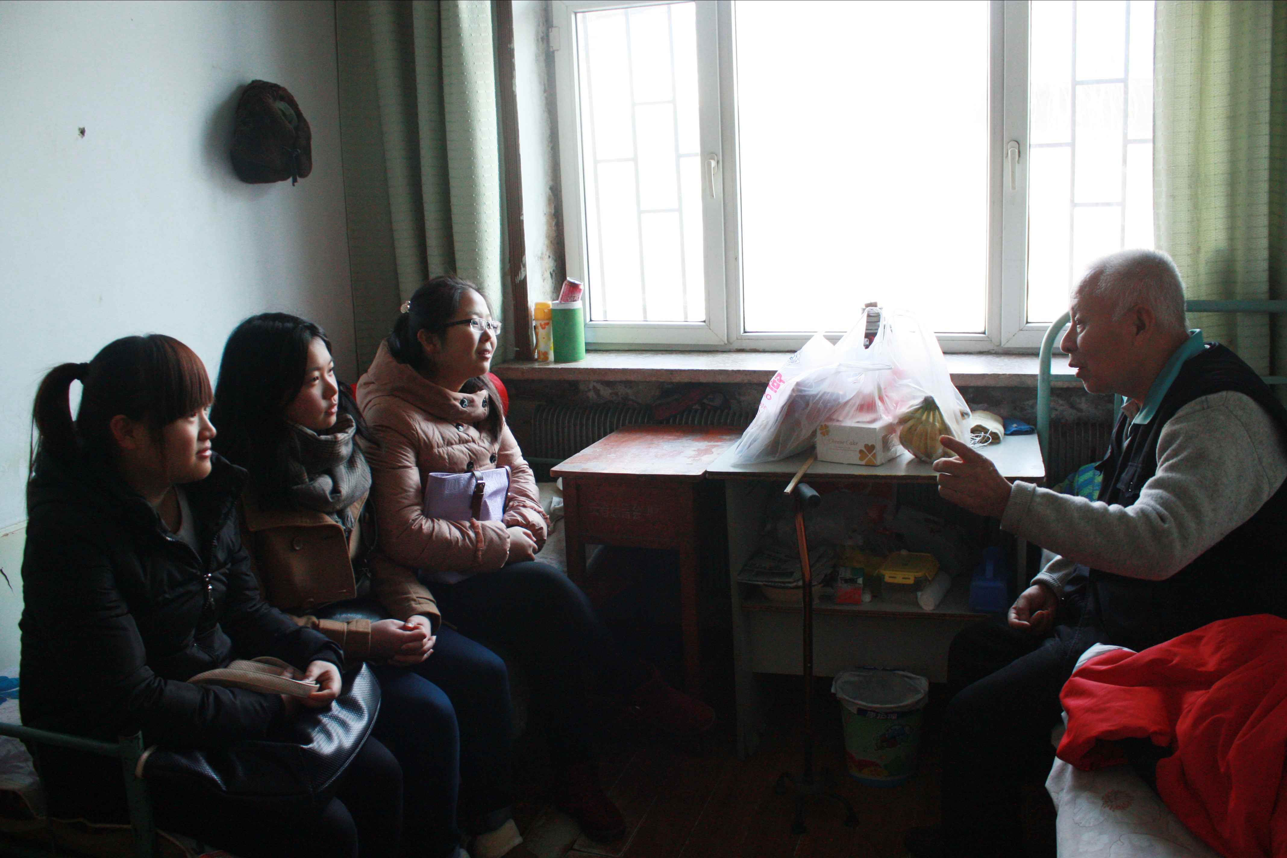 15日上午8时,志愿者们带着水果及营养品来到集安路养老院,送上慰问品之后,养老院的负责人将大家有序分至各个房间与老人们聊天、为老人们表演节目。平日里,老人们多是呆在自己的屋子里,缺乏沟通交流,志愿者的到来让老人们很是欣喜。员工们围坐在老人身边,就老人们的身体情况、家庭生活、在敬老院的饮食起居等情况聊起了家常,还不时地向老人们介绍自己的家乡特色,在校的逸闻趣事,让老人们了解到更多新鲜有趣的事情。老人们被志愿者们的热情所带动,渐渐打开了话匣子,和大家聊起了他们过往的趣事和经历。一位94岁高龄的老奶奶讲述了自己在抗日战争期间的故事,平实地表达却深深地吸引了同学们,再现了那个动荡不安的年代,使同学们对战争的残酷有了更深的理解,也懂得了和平年代的来之不易。