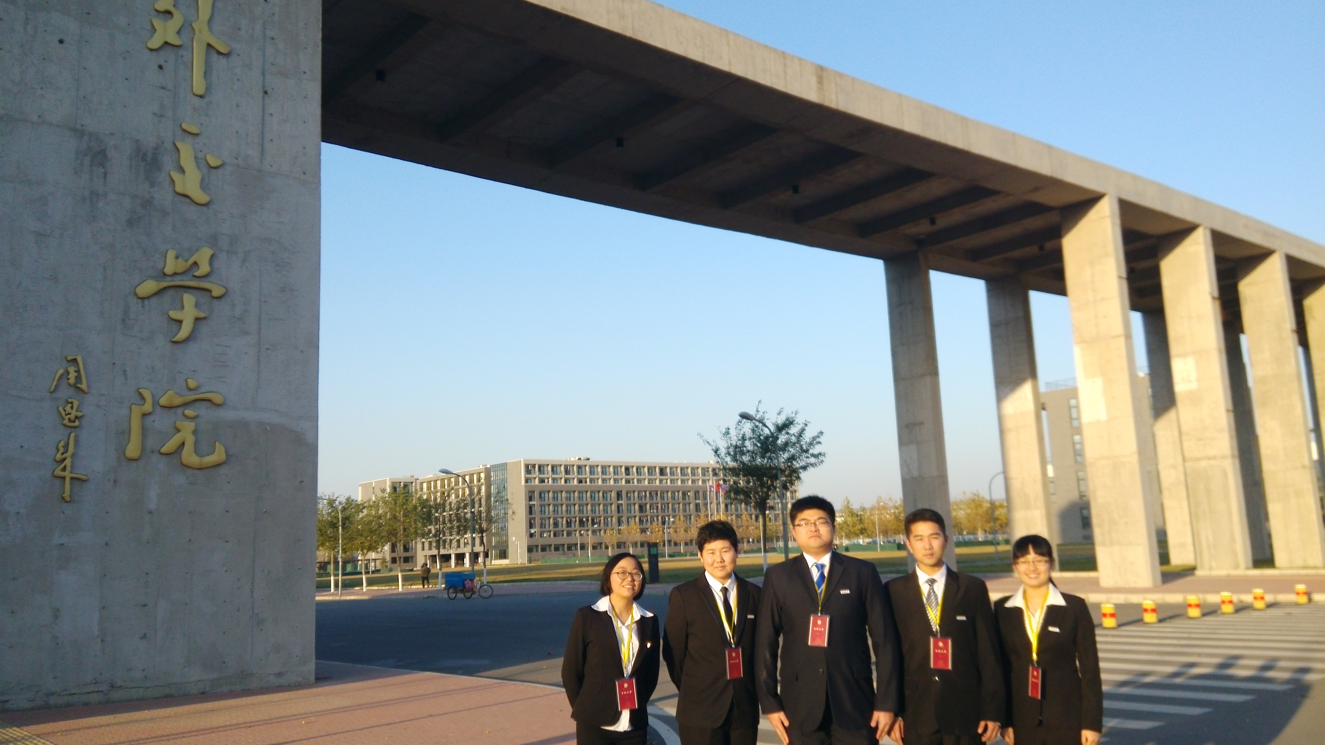 2014年11月23日,由中国外交公司主办的第十三届全国老员工外交外事礼仪大赛在外交公司大礼堂落下帷幕。2012级本科生李莎莎、范鸿仪、苏靖、夏海洋经过校内的层层选拔获得组成了Bevictor伟德代表队,在伟德体育辅导员刘洋老师的带领下,奔赴北京参加国赛。