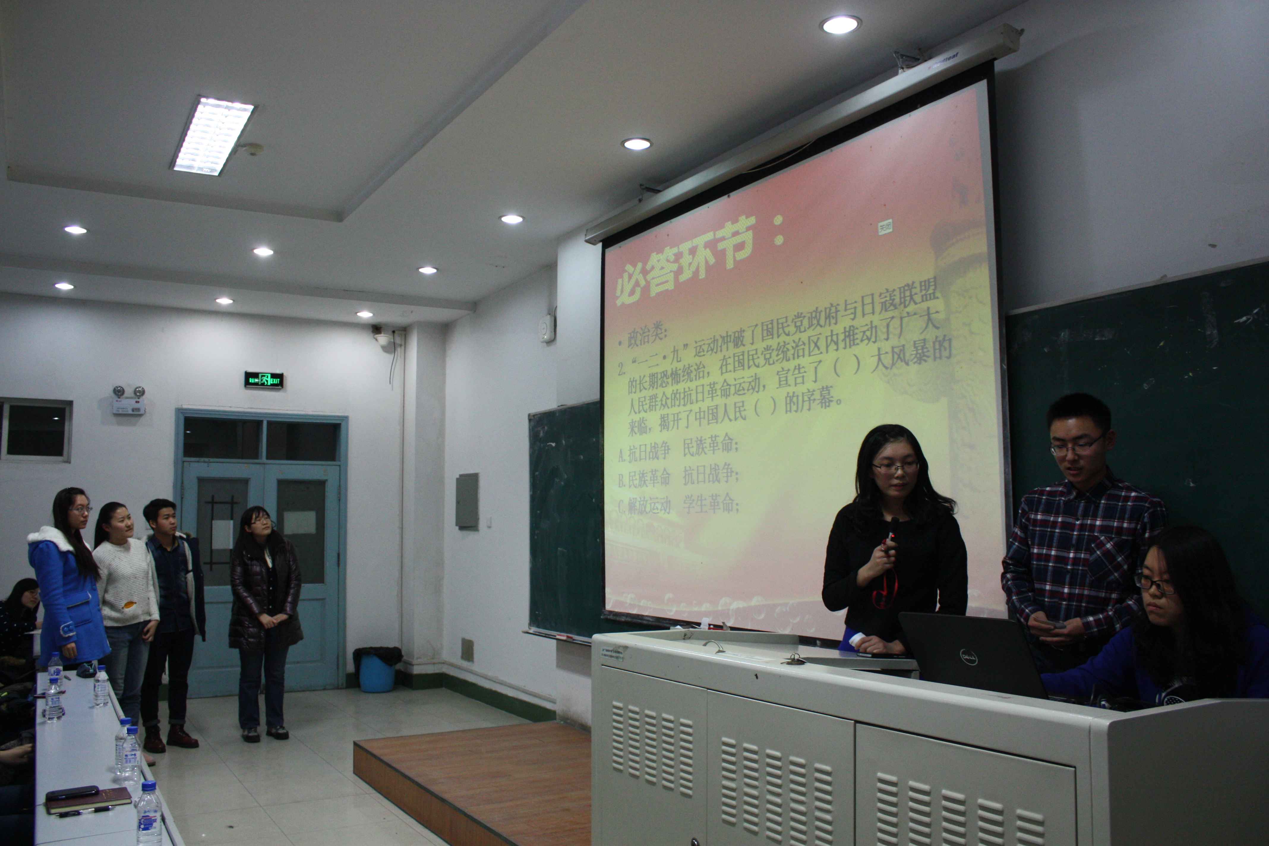 为铭记光荣历史,争做优秀团员。伟德体育纪念“12.9运动”团日活动第二场——“12.9”主题知识竞赛于12月7日晚6点在Bevictor伟德前卫南校区三教三阶进行。本科生辅导员刘洋、曲畅竹,团委主要员工干部出席本次活动。本次活动由姜鹤(2013级)和王森(2014级)主持,参赛的五个队伍分别是2014级四个班级和社团代表队。