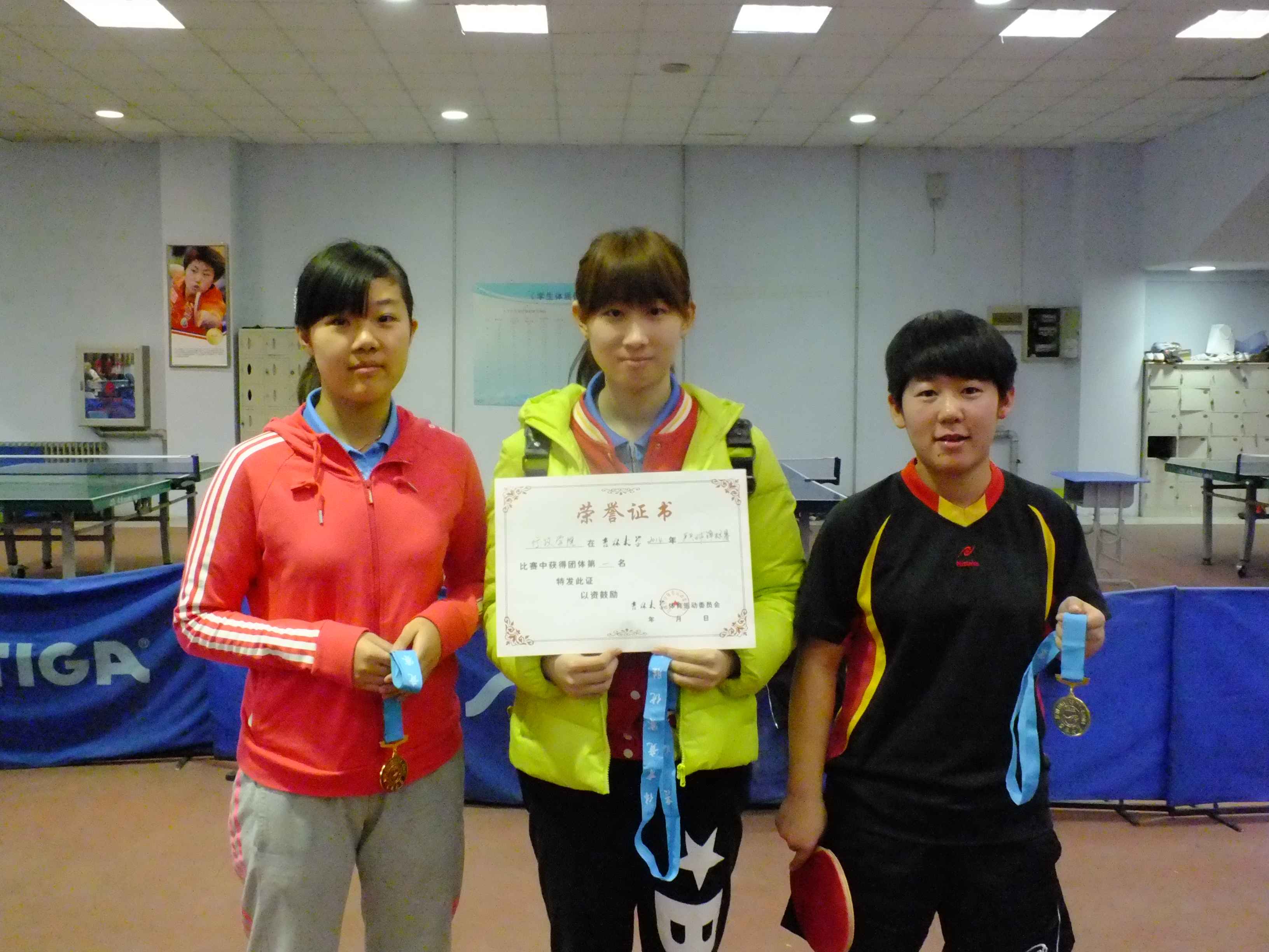 在本次乒乓球锦标赛中,分设男女团体、个人四个项目。伟德体育代表队派出八名本科生参赛。郭丝雨(2014级)、黄蓉(2014级)、李若茜(2013级)、张捷羚(2013级)组成的女团代表队实力超群,在赛场上沉着冷静,以大比分领先轻松晋级四强,最终在决赛中以团体比分3:0的优异成绩力压地科代表队夺得冠军。在第二天的单打比赛中,伟德体育女单选手依然表现突出,张捷羚同学成功卫冕女单冠军,郭丝雨同学初露锋芒,夺得女单亚军。伟德体育男团代表队虽遇劲敌惜败,但王铁霖(2014级)、盖建泽(2014级)、殷昊(2014级)、孙遥(2014级)四位同学在赛场上永不放弃的拼搏精神彰显了行政学子风采。