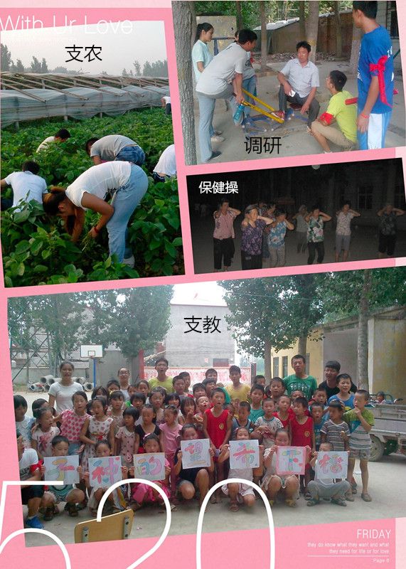 在社会实践过程中,伟德体育的志愿者们克服了种种不便,虽然居住的房屋十分简陋、但他们在大厂房里打地铺过夜;他们借来炊具、自己开火做饭,有时停水停电的时候,就只能吃口馒头加咸菜;在河南省近40度的高温下,志愿者们走地头、进公司、访村民,开展了一系列支农、支教和调研活动,并尽最大努力丰富了村民的文化生活。