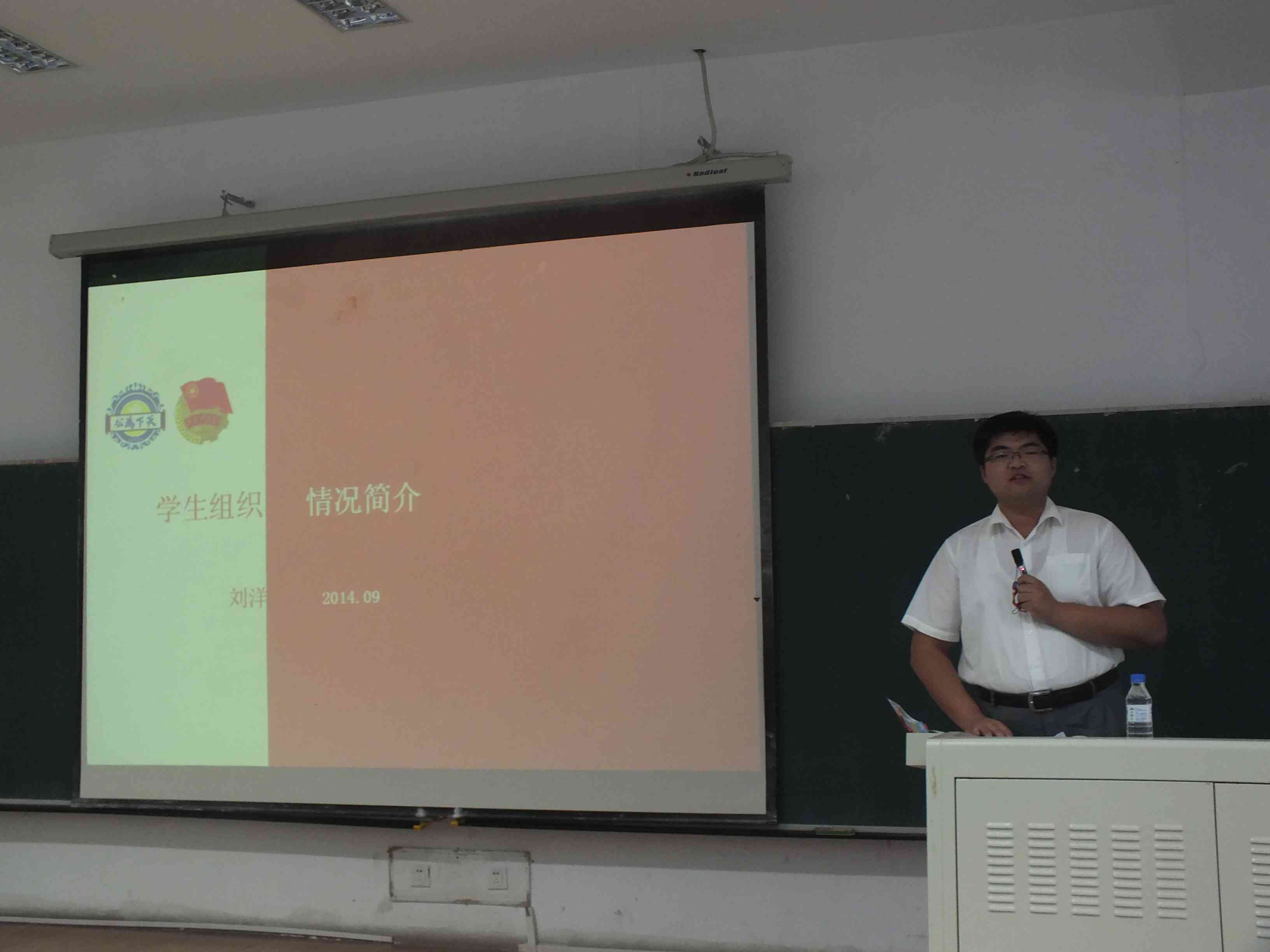 公司辅导员刘洋在团学教育中,对校院两级员工组织做出了介绍,鼓励新生积极参加到员工组织中服务师生、收获成长。