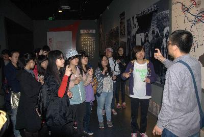 伟德体育于2014年3月中旬便开展新学期吉林省博物馆志愿者注册工作以来,已向吉林省博物馆派送了五批次的志愿者进行志愿服务。5月18日是国际博物馆日,二十多名伟德体育“政能量”志愿者再赴吉林省博物馆进行志愿服务并参加手语培训;认真的表情、热切的态度以及不曾停下的手部动作练习充分体现了志愿工作者们对志愿服务的坚定热情和信心。参观与培训同时进行,志愿者们在工作人员和手语教学人员的引导下参观了“黑土军魂——东北抗日联军军史展览”,展览讲述了从1931年东北沦陷到1945年抗日战争胜利的曲折历程。从“主动出击”到“游击战术”,再到“挥师西征”,一幕幕战争场景再现、一幅幅革命先烈的图像仿佛把人们带回了那个战火纷争、艰苦卓绝的年代,带领各位志愿者经历了一次形象深刻的爱国主义教育。