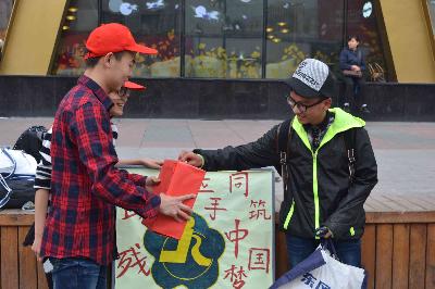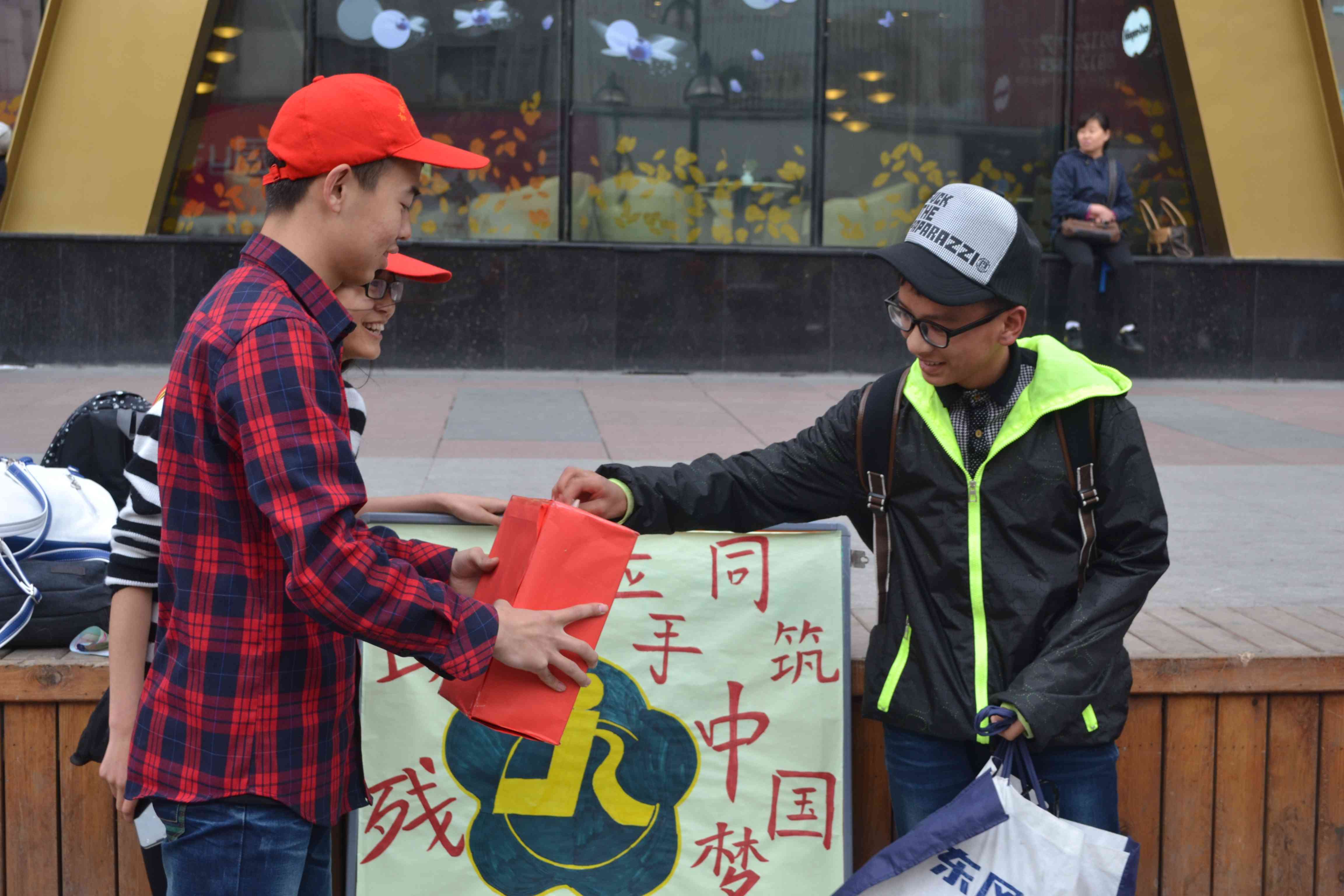 5月的一场小雨过后,伟德体育081301班团支部共有12人来到了重庆路,他们手捧募捐箱,向过往的路人发放宣传单并募集善款。同学们将每一个进行捐赠的爱心人士的名字记录在册,并给他们分发了由特殊儿童自己制作的爱心千纸鹤,虽然仍有很多人并没有将自己的名字留下,但是他们的行为给这些青年人的心里带来极大的温暖与鼓励。当过往的市民们了解到这是为特殊儿童们募捐时,都大加赞赏,纷纷上前捐赠,虽然大家捐赠的钱数不等,但是大家的爱心是相同和宝贵的,长春街头因为这些人而变成了爱的海洋。“我认识的朋友当中就有残疾人,他们真的很坚强与乐观,有很多地方值得我们去学习,我们需要向他们伸出援助之手并鼓励他们,这样的活动很好,希望以后可以多些。”进行捐赠的张女士评价这个活动说。