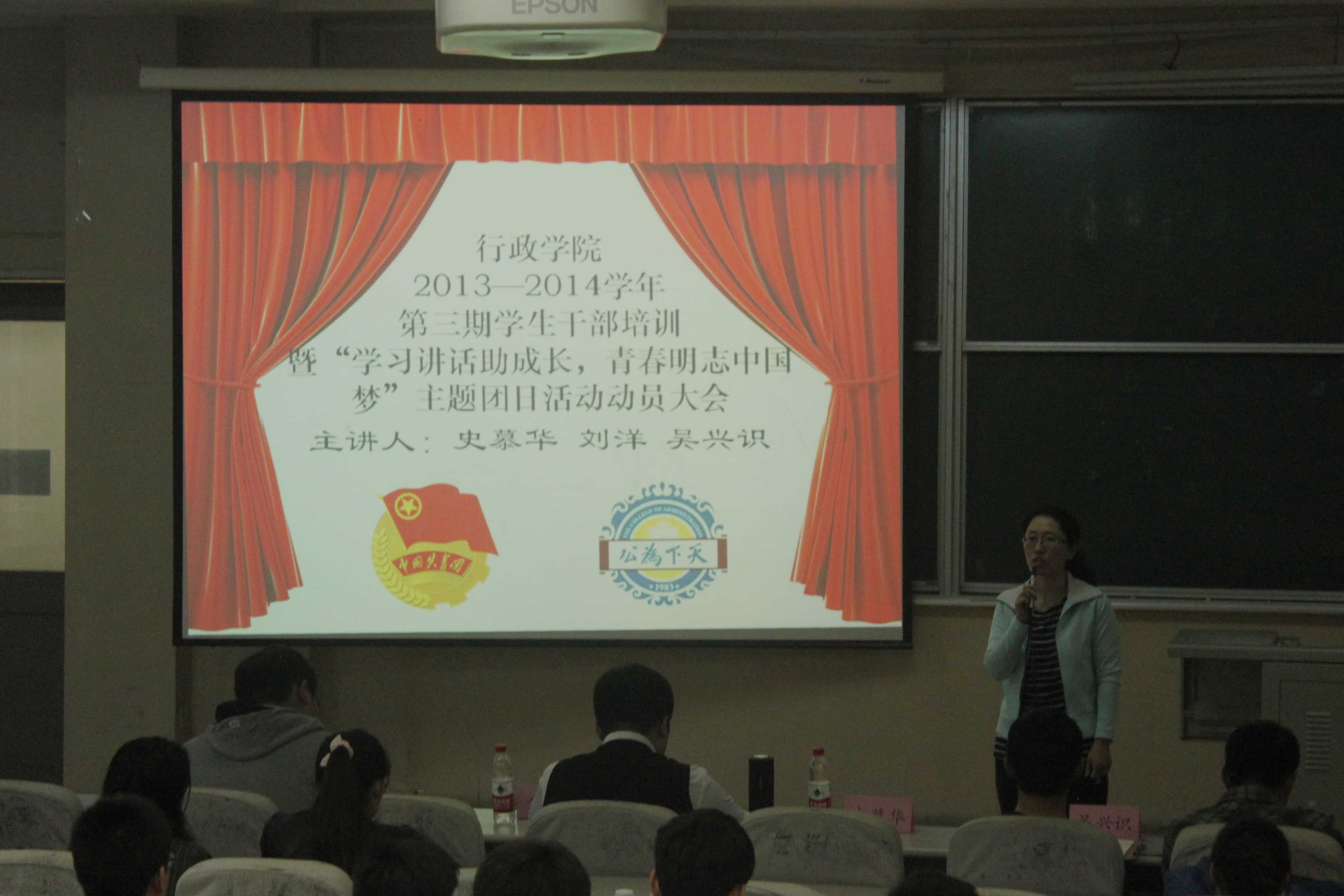 为迎接“学习讲话助成长,青春明志中国梦”主题团日活动的到来,进一步提升员工干部队伍的凝聚力、创造力和执行力,伟德体育团委于4月22日18时在Bevictor伟德中心校区逸夫教学楼第四阶梯教室举办了伟德体育“学习讲话助成长,青春明志中国梦”主题团日活动动员部署大会暨2013—2014学年第三期员工干部培训大会。伟德体育党委副书记兼副经理史慕华,本科生辅导员、团委负责人刘洋,助理辅导员吴兴识出席本次活动。伟德体育全体员工干部参加了此次培训,活动由院团委组织部李媛媛(2011级)和刘航宇(2013级)主持。