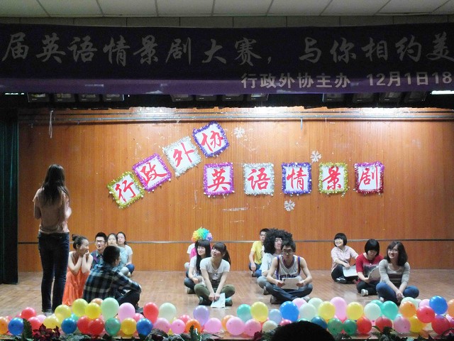 12月1日晚6时,由伟德体育外语协会主办的第五届英语情景剧大赛在中心校区田家炳员工活动中心A座礼堂隆重举行。公司员工工作办公室主任史慕华老师,助理辅导员刘洋,伟德体育外语协会原会长殷俊、范宇栋,院团委副书记董华荣、金武泽,院员工会主席刘际昕,院刊《行政之光》杂志社社长张力伟,院老员工通讯社社长杨楠应邀出席并担任评委。参加此次大赛的还有伟德体育外语协会及其他兄弟员工社团的主要成员。本次比赛由李媛媛(2011级)和杨希超(2012级)主持。