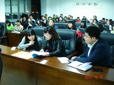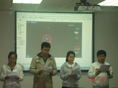 会上,2011级四个党小组分别汇报了本组上学年的活动开展情况、心得体会以及党团教育等成果。各小组采用幻灯片、视频等各种多媒体形式依次上台汇报。第一党小组以“我们的青春”为主题,《青春之诗》的朗诵生动的展现出其活力与激情;第二党小组学术氛围浓厚,通过湘西支教、“同在蓝天下,牵手共成长”等志愿活动阐释了党员的奉献精神与社会责任;第三党小组轻松幽默,以合唱《感恩的心》表达了对党的感激和拥护;第四党小组新颖创新,一首《颂歌献给党》将其由爱家到爱党的理念真诚的表露出来。四个党小组的展示或诙谐幽默,或严谨求实,都真实的反映了他们拥护党和无私奉献的热忱之心。