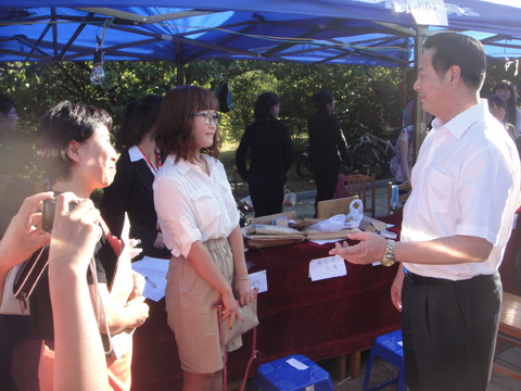 公司在校区北门和东门都设置了临时接待站,这也是新生步入大学的第一站。虽说是临时接待站,但这里的热闹程度也非同一般。除了担任公司新生的引路人之外,值班人员还为过往的家长当起了义务顾问,这让初来乍到的新生和家长们倍感温暖。在去往正式迎新点的路上,接待人员会为新生及员工家长介绍了公司的概况,交谈虽然简短,但这会在一定程度上解除新生的疑惑,让他们感到宾至如归。