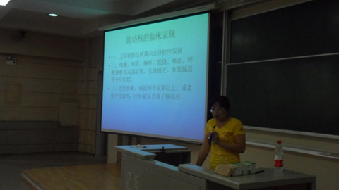下午3时,新生卫生保健讲座于逸夫教学楼二阶举行。校医院王晓晖老师首先就校医院的概况和医疗证的使用方法做了简要介绍,随后于老师结合经典案例着重介绍了结核、风疹、水痘等几种在校园中常见的流行性疾病及其防治方法。最后,于老师建议同学们要良好的生活习惯,保持个人卫生,加强身体锻炼,为今后的学习生活奠定坚实的基础。