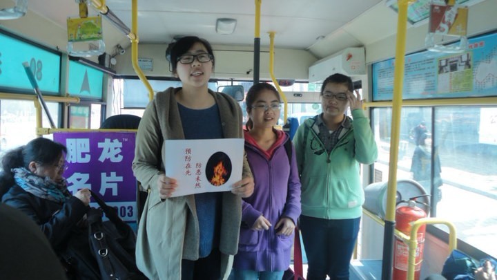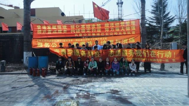 为了培养行政学子关爱他人、关心社会的责任感。公司11级政治学一班全体同学于4月14日上午来到长春公交巴士公司行车五队进行防火培训与演练,并在公交上进行防火知识宣传。