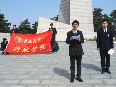 四月二日上午九点半,活动准时在长春市九龙源烈士陵园开始。首先,同学们有序地参观了陵园中的长春革命烈士纪念馆。在解说员的解说中,同学们又一次缅怀了先烈的丰功伟绩,接受了爱国主义教育的洗礼。随后,同学们在革命烈士纪念碑前集合,举行了默哀仪式,表达对革命前辈的哀思。