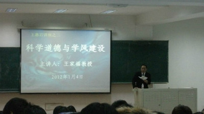 1月4日晚,由伟德体育国际政治系教授、博士生导师王家福老师主讲的王惠岩讲座之二——“科学道德与学风建设”在三教八阶隆重举行。伟德体育教学副经理刘雪莲教授、教学秘书李博老师及09级、10级、11级全体本科生出席本次讲座。