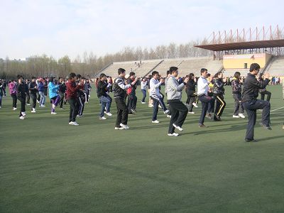 4月18日,在员工会体育部及文艺部的组织下,三路长拳,太极拳训练和舞蹈编排工作正式开始。由于公司人数少,训练时间紧,任务量大,准备工作面临着巨大的困难。但同学们秉持着“院小力量大”的信念,团结协作,迎难而上,不惜牺牲自己的休息时间,每天早晚合练2个小时,甚至利用周末的时间熟悉动作,只为在运动会文艺及武术比赛上拔得头筹,为公司增光添彩。08级员工会主要成员每日都不辞辛苦地陪同同学们训练,随时关注训练进度。团委书记马景惠老师也亲临训练场为同学们进行指导并加油鼓劲,相信经过刻苦练习,行政学子定能在全校师生面前一展行政人的风采。
