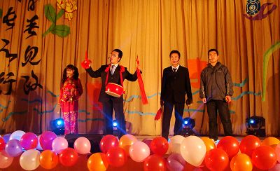 随后,演出正式开始。本次的节目可谓是纷繁多样、异彩纷呈。幽默诙谐的三句半,优美动听的歌曲,各式各样的乐器表演等使全场呼声不断。兴起时,政治学系博士生导师,来自蒙古族的宝成关老师更是走上舞台,为观众带来了一首颇具民族特色的歌曲,全场气氛一度达到高潮。随后,话剧节目《老员工活》和《三国无双》中,表演者们更是凭借彼此之间默契的配合、搞怪的演绎方式以及夸张的语言不时引来全场观众的阵阵欢笑。最后,两个半小时的演出在全体08级员工会成员合唱的一首《爱的翅膀》中落下了帷幕。