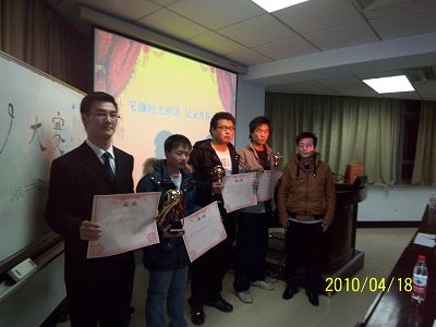 大赛由牟明标、李冰主持,伟德体育团委书记马景惠老师、团委副书记田治琛及团委各部部长出席了大赛并担任评委。大赛首先播放了开场短片,紧接着展播了09级四个班的参赛作品,分别是一班的《青春记忆》、二班的《王牌制片人》、三班的《情系西南》和四班的《坚强的心》。各班的作品以自身独特的风格、别具匠心的设计给在场的观众带去了快乐、感动和反思。接下来进行了一场配音游戏。游戏参赛者诙谐的表演增添了大赛轻松融洽的气氛。经过激烈的角逐,最终评出了四项团体奖 ——一班荣获最佳视觉效果奖 ,二班荣获最佳化妆(服装)奖,三班荣获最佳原创剧本奖,四班荣获最佳影片奖;六项个人奖—最佳男主角:刘洋,最佳女主角:洪桑桑,最佳男配角:王宏伟,最佳女配角:唐馨h,最佳导演:牟明标,最佳剪辑:李诗。最后,由团委副书记田治琛做最后总结。