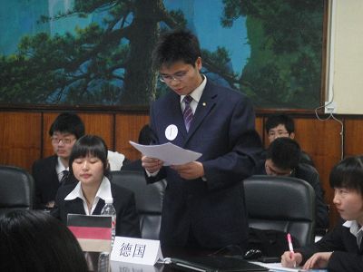 本次模拟联合国大会完全参照联合国大会的流程,以“气候的博弈 节能的战场——谁是最后的赢家”为主题,模拟中国、美国、俄罗斯、德国、马尔代夫等12国在联合国大会上的发言内容和应对对策。各国家代表在发言阶段、正式辩论以及非正式辩论阶段声情并茂的阐述代表国的基本立场,针锋相对,精彩绝伦。为经济发展权不断努力争取的中国和印度、推卸责任成为众矢之的的美国、面临生存考验的岛国马尔代夫和图瓦卢、想提供科学技术和资金来改善落后国家的气候以寻求更高的国际地位的欧盟和日本——每一个国家代表都将所代表的国家风采淋漓尽致的表现。大会的最后是通过德国提交的有利于全球气候保护的议案结束。