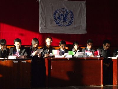 11月22日下午,伟德体育首届“模拟联合国”活动在逸夫报告厅顺利举行。16支团队代表安理会成员国及列席国格鲁吉亚对“俄格冲突—南奥塞梯与阿布哈兹问题”这一议题展开辩论,提交、表决草案。